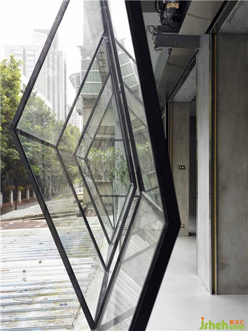 座落于幽靜巷弄里的方正空間,面對著一大片的連續(xù)樹景,用鉆石切面的語匯構境,試圖透過不同的角度捕捉綠意,窗戶上下左右的錯置分割,可以看到不同畫面的場景,自然的景色中,多了層次變化及光影轉折,多重視野的重置組合,隱喻著創(chuàng)意工作者的不同眼界,創(chuàng)新求變的思維及追求完美的精神。