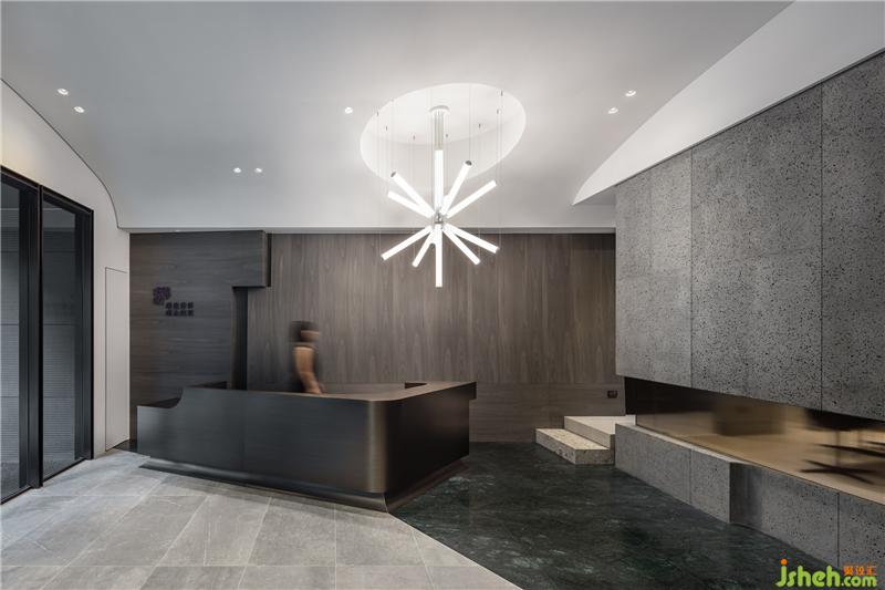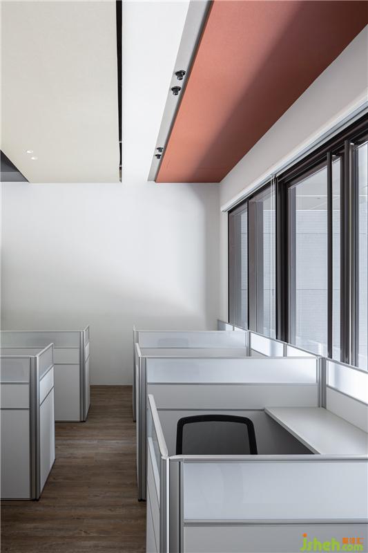 舉凡團(tuán)隊(duì)合作必有架構(gòu),而建設(shè)業(yè)無疑是分工明確的一支,因此天地壁適當(dāng)?shù)碾[喻,成為定義分區(qū)屬性的精神面象征,好比造型天花板取活力的黃加上燈光計(jì)劃,猶如太陽釋放能量,鼓動業(yè)務(wù)部門積極向上;鏡頭換個(gè)方向,線性的紅內(nèi)含誠摯熱情,恰是售服部門最佳代言;漸層的藍(lán)凌空舞動,像風(fēng)箏一樣自由無拘,解讀為設(shè)計(jì)部門不設(shè)限的想象與創(chuàng)造力;而沈穩(wěn)安謐的綠,令人直接聯(lián)想物產(chǎn)豐饒的田園大地,即是公司飽滿精氣神的具體而微,財(cái)務(wù)部門的「金生水」意象,透過天花板斜曲錯(cuò)層的角度,表現(xiàn)浪花洶涌的動態(tài)起伏,巧思中實(shí)則飽含財(cái)源滾滾的祝福。