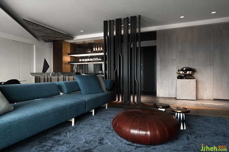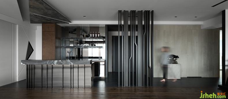 首先在入口玄關(guān)與客廳之間,打造一座向上意象及具穿透感的金屬造型屏風(fēng),一方面也是隱喻事業(yè)、家運穩(wěn)定向上發(fā)展的衷心祝福。
