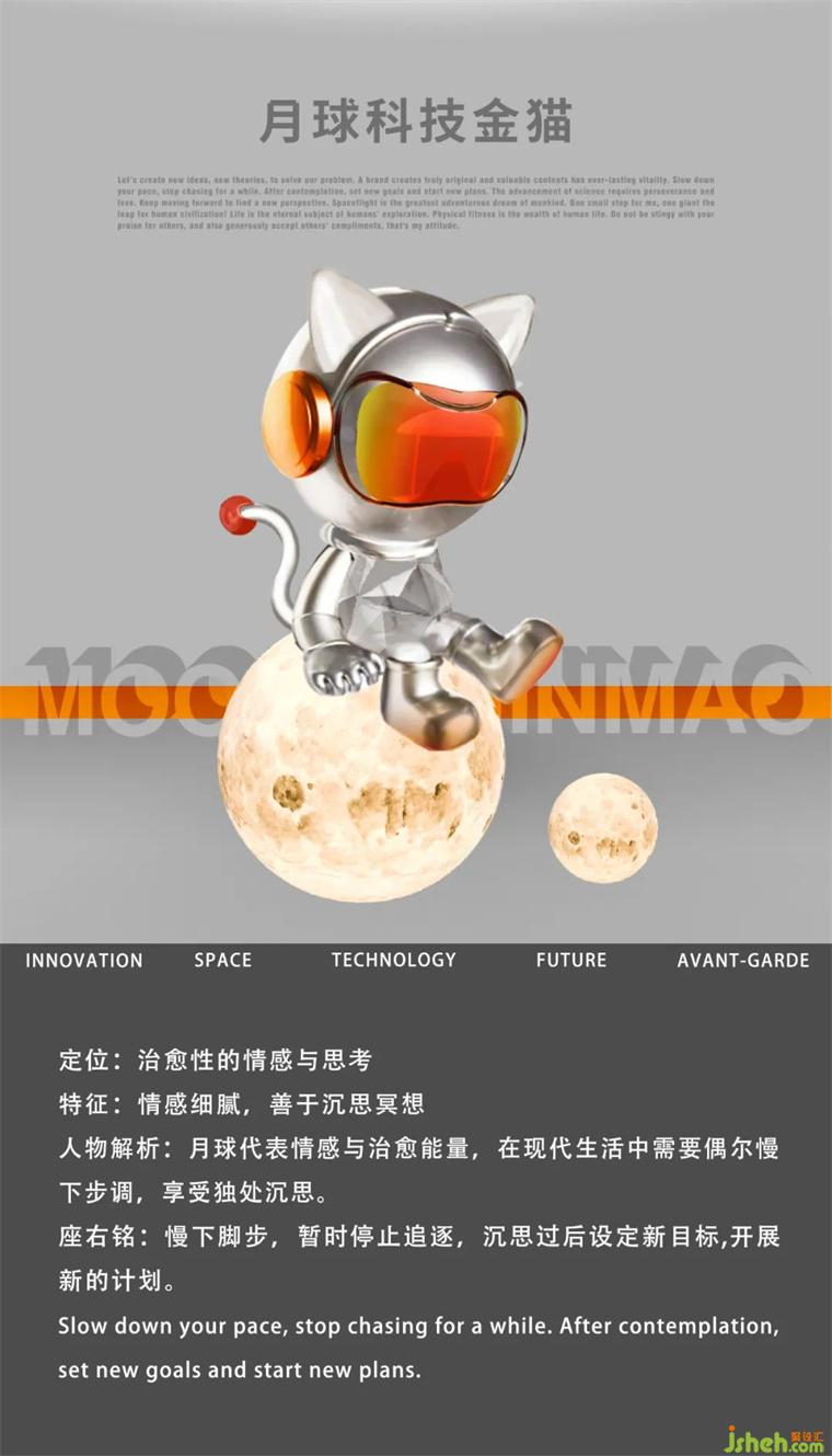 盒子櫥窗處有只萌趣的精靈——月球科技金貓,它略顯恬靜的姿態(tài)顯得尤其美好,一派沉思的模樣讓人不由得跟著一起思索起來(lái)。裝修設(shè)計(jì)將其與月球的形象相關(guān)聯(lián),不僅僅是天馬行空的想象,更是對(duì)生活的無(wú)限期許,月球讓我們的思緒飄遠(yuǎn),柔和的月光更讓我們沉靜下來(lái),放慢腳步駐足思考本心,尋找內(nèi)心深處治愈的能量。