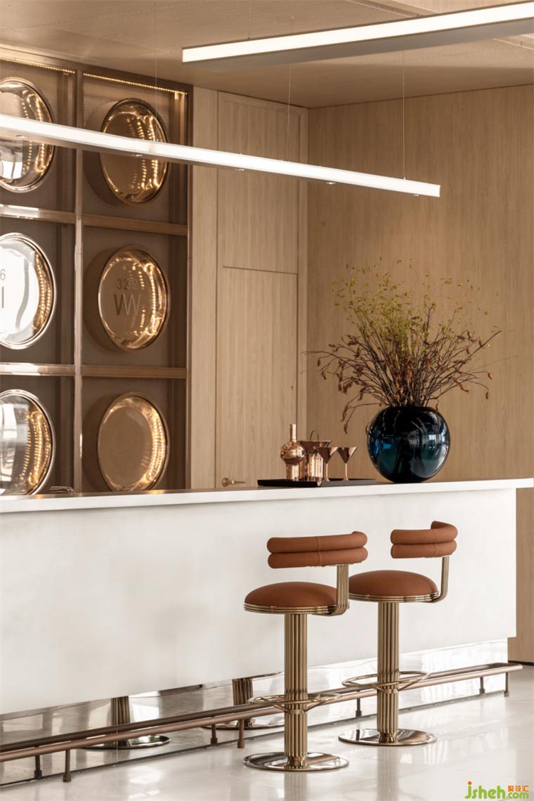 一場鹿鳴宴,取自古老浪漫的《詩經(jīng)》,更添幾份古雅。陳設(shè)與色彩的精心設(shè)計,售樓處設(shè)計營造一種雅致從容舒適的氛圍,宴會可為雅集。沉穩(wěn)秉性的紅棕色調(diào),輔以精巧的食器,更顯雅食之風尚。