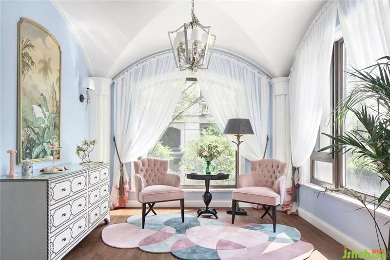 書房與英式茶室連為一體,貫通的空間不僅引入了更多的自然光入室,更將休閑與私密空間結(jié)合在一起,讓主人可在工作與休閑之間適意切換。工作之余,踱步到茶室,置身于典雅精致的英式家具中,在一股清新的田園風(fēng)中,眺望欣賞窗外的美景。
