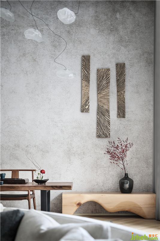 原木、頑石、細(xì)竹、這些渾樸溫潤的天然材質(zhì),素樸稚拙,加之茶器、香茗、花藝,便營造出一種“禪茶一味”的品茶意境,淡雅空靈,物我兩合,與禪宗內(nèi)在的謙遜與修養(yǎng)相遇相融。