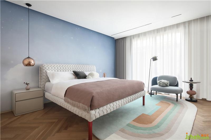 二樓的兩間女兒房均為套房。并根據(jù)兩個(gè)女孩不同的年齡個(gè)性與身心發(fā)展階段做出了不同的設(shè)計(jì)方案。大女兒房用沉靜理性的藍(lán)色來(lái)做主要的裝飾色面,并照顧到其學(xué)習(xí)與成長(zhǎng),辟有隱秘的學(xué)習(xí)區(qū)域。