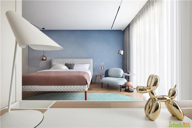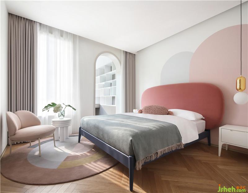 粉色系的小女兒房充滿天真爛漫的童心童趣。拋物線的拱頂運用,打開一扇童話世界的城堡中的大門,以開放的姿態(tài)將空間縱向連通,通向無邊無際的好奇心與想象力。