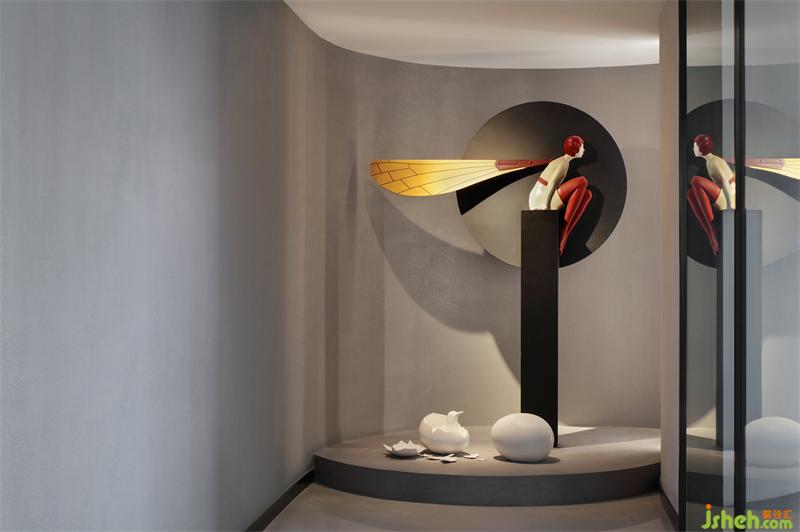 故事敘述,講求起承轉(zhuǎn)合,首先來到起點。新辦公區(qū)設(shè)計入口處雕塑靈感來源于法國藝術(shù)家約翰·莫里斯的創(chuàng)作理念,獨坐高柱、身披翅膀的沉思者形象,給人一種“獨上高樓,望斷天涯路”的冥思與求索印象,寓意著公司在成長中始終不懈探索的精神烙印與文化傳統(tǒng)。