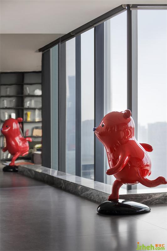 雕塑《奔跑》來自藝術(shù)家張占占最經(jīng)典的“小熊”系列,它有著俏皮可愛的形象,圓滾滾的身體,惹人憐愛的表情以及纖細(xì)的四肢,正擺出向前奔跑的造型,讓人忍俊不禁。藝術(shù)家張占占用這樣引起人感情共鳴的形象讓人在藝術(shù)作品中感受童真的好奇心與活力。同時,藝術(shù)家選擇紅色作為小熊的顏色,是希望更多的人注意到“小熊”,在空間中吸引人的視線,讓藝術(shù)在空間中的作用最大化。