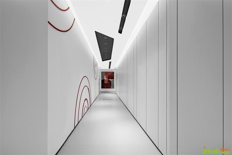 公共通道大面積的使用白色,潔凈時尚,充滿未來感。局部的圓形造型呼應(yīng)著公共空間的造型要素。