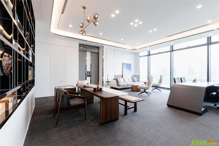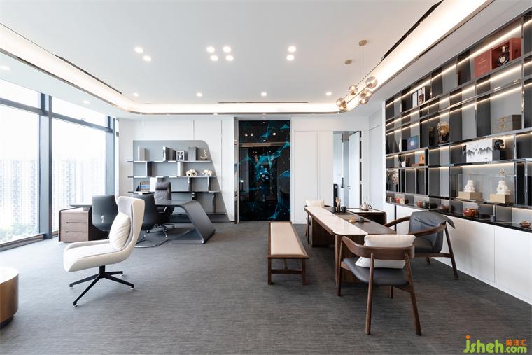 每一個(gè)空間的構(gòu)建都是一種秩序的建立,辦公空間設(shè)計(jì)其本身的功能性與人在其中與之相連接的方式共同構(gòu)成了空間內(nèi)特有的秩序,設(shè)計(jì)根據(jù)使用功能的要求,在空間的四分之一位置構(gòu)建了空間的橫貫交通線,橫貫線有機(jī)的分割出前廳公共區(qū)與接待區(qū),開放辦公與管理辦公,總裁室內(nèi)的接待飲茶區(qū)與辦公區(qū),空間的裝飾也圍繞展開。