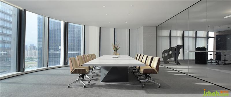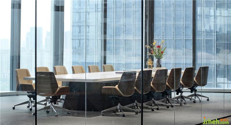 大面積玻璃代替厚重墻體,輕薄的線條邊框隱匿其中,共享會議室的物理分區(qū)體量被減至最小?!巴该骱凶印钡慕Y(jié)構(gòu)被光線打通,一個(gè)高端質(zhì)感迭代空間內(nèi),空間與工作發(fā)生緊密而富有無盡創(chuàng)造力的未來。裝修設(shè)計(jì)
