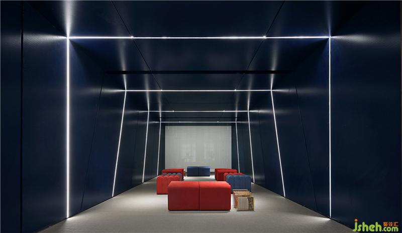 多功能影音廳身兼員工培訓(xùn)、公司文化展示、休閑影音播放等多種文化社交功能,以“盒子”的概念集成出一個(gè)幽暗與明亮對比的焦點(diǎn)場所。包裹墻面和天花的沖孔鋁板有效吸音,實(shí)現(xiàn)完美的聲學(xué)效果,為表情豐富多變的工作方式形成可能。