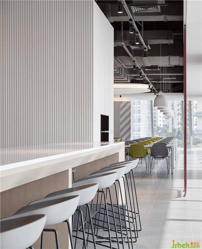 為了能夠顛覆大眾對潮濕悶熱食堂環(huán)境的刻板印象,YuQiang&Partners將時(shí)尚現(xiàn)代、摩登與節(jié)奏感融入簡單開放的空間,把深圳灣一號標(biāo)志性的絕美的都市無遮攔海景與陽光風(fēng)情最大化,對“員工食堂”的概念進(jìn)行一次全新演繹。餐廳設(shè)計(jì)