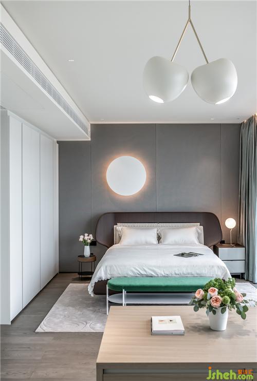 不論是包裹式布藝墻面,還是精心考慮的有主次的功能性照明,臥室都是在“舒適”為首要的前提下而展開。