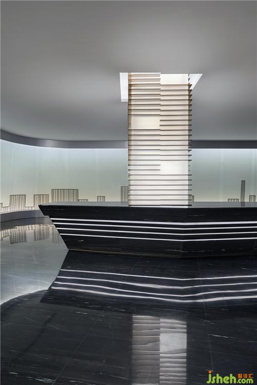藍金沙大理石和亞克力構(gòu)成太子廣場的建筑雛形,直聳入天花板的辦公塔樓成為目光的焦點。