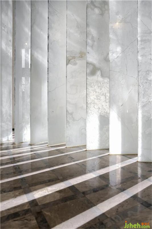 玉出于石,石可凝玉。設(shè)計(jì)師塑造空間結(jié)構(gòu)時(shí),在選材上的第一考量,是“去重量感”,因而玉石材質(zhì)的清透與輕盈,成為空間氣質(zhì)和格調(diào)的來源。