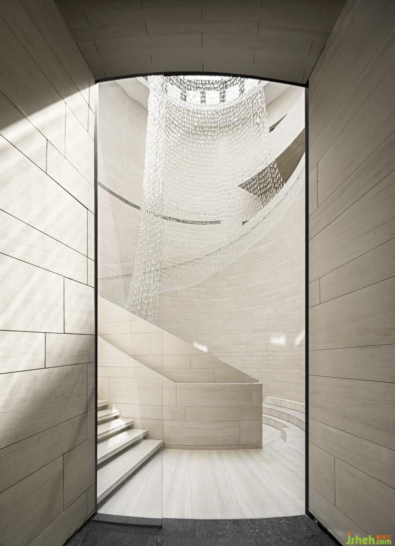 進(jìn)入這座海上“藝術(shù)方舟”,順著樓梯逆時針到達(dá)二層可俯瞰中庭自由的羅馬式廣場,也可仰望四時晨昏的變化。再由二層順時針回到首層原點(diǎn)時,不覺間已縱覽時間和空間兩種維度。
