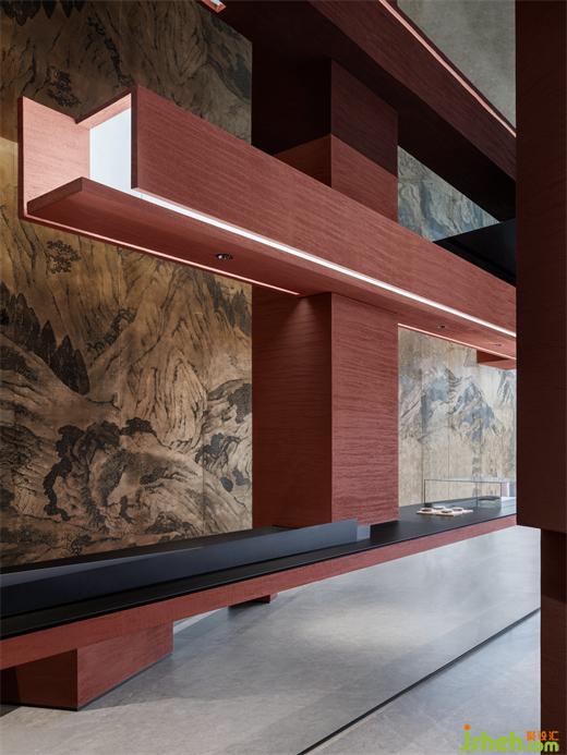 畫作靈感源于《清明上河圖》,提取其寫實又浪漫的“反差感”,茶樓設計在古畫《上林圖》《惠山茶會圖》《攆茶圖》三者基礎上進行筆墨添減,并結合現代人的觀念及傳統(tǒng)的銅版工藝做出描繪。