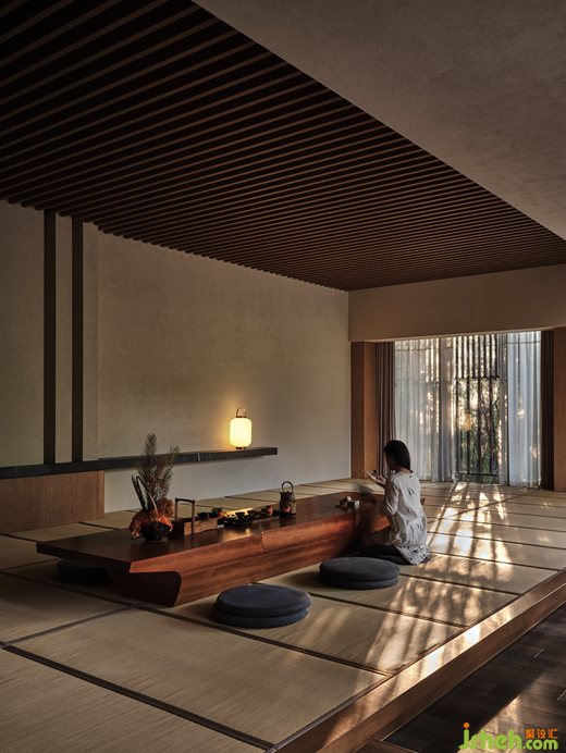 玻璃窗外是竹林,室內(nèi)是原木暖調(diào),自然是一種流動的狀態(tài)。焚香、煮茶、泡溫泉、做spa,享受下午茶歇、日式輕食......水療中心的多功能體驗(yàn),由人的放松需求主導(dǎo)。
