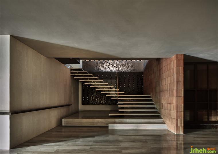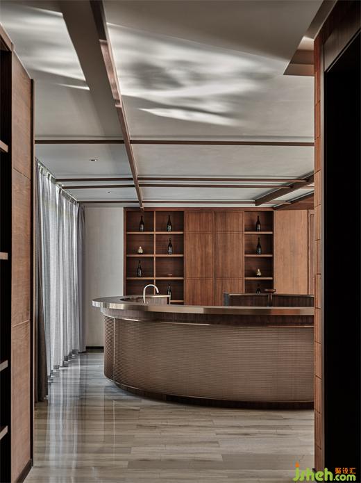 覆土建筑與自然融為一體,玻璃材質(zhì)倒映出湖面,波光粼粼。莊園酒店設(shè)計伴著流動的詩意,穿過入口長廊,盡頭處即“椏云”高端私人餐廳。