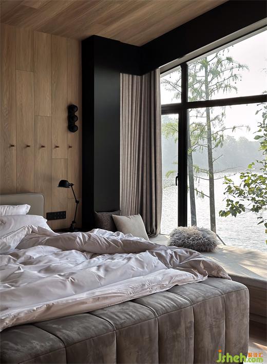 一扇窗臺即一幅景框,與湖面遠(yuǎn)遠(yuǎn)疊為一個詩意畫面,戶外自然之美,頗有詩句里“堂開團竹色,窗靜引送風(fēng)”的意境。