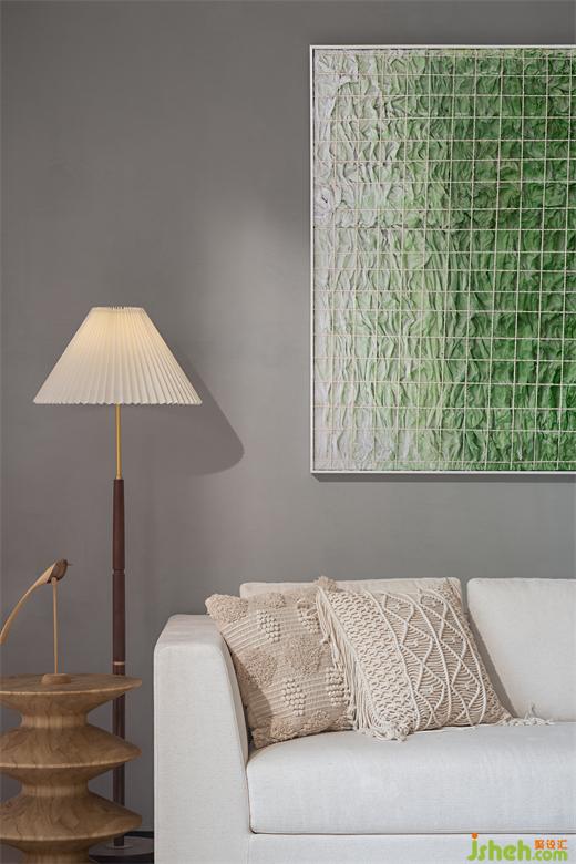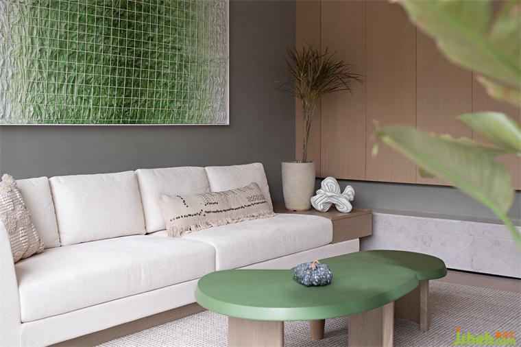 融創(chuàng)樣板房設(shè)計(jì)打造有機(jī)自然主義家居氛圍客廳清新的綠色色調(diào),與自然同頻
