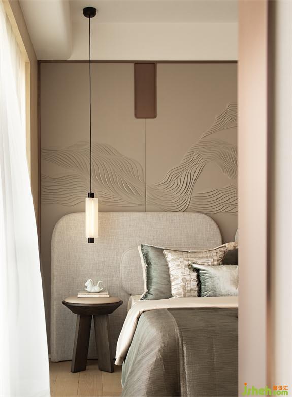 東方雅致格調(diào)讓人感知靜謐的力量??臻g承載的是一種實(shí)實(shí)在在的生活,能夠感知人的情緒,存放身心的居所。主臥空間摒棄繁復(fù)的東方元素,去繁從簡(jiǎn),天恒灣景復(fù)式海景庭院設(shè)計(jì)運(yùn)用各物料的“質(zhì)”發(fā)生層次變化,細(xì)節(jié)處呈現(xiàn)東方的雅,整體卻舒適豐盈。