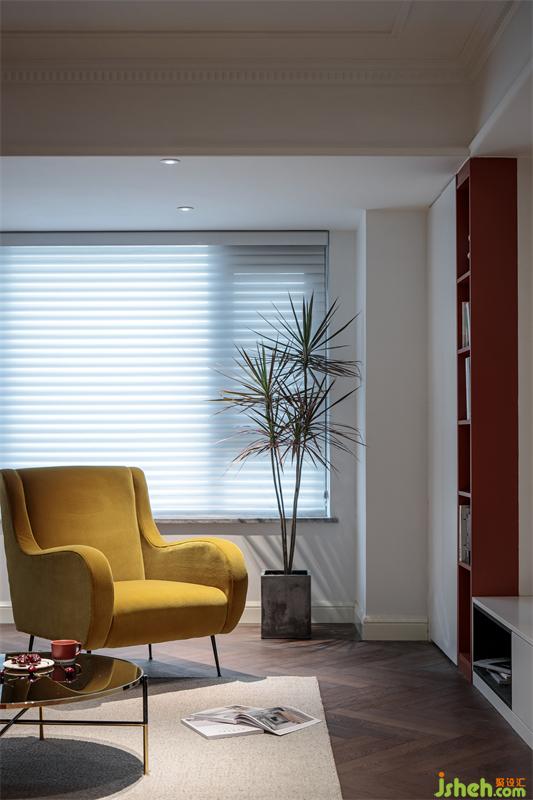 客廳,焦糖色皮沙發(fā)、嫩黃色單人椅、可愛的大象獨(dú)凳、配上有設(shè)計(jì)感的電視柜和復(fù)古裝飾畫,整個(gè)客廳的休閑氛圍立刻營(yíng)造了出來(lái)??蛷d陽(yáng)臺(tái)增加的儲(chǔ)物柜,還特別規(guī)劃了養(yǎng)殖多肉的區(qū)域。
