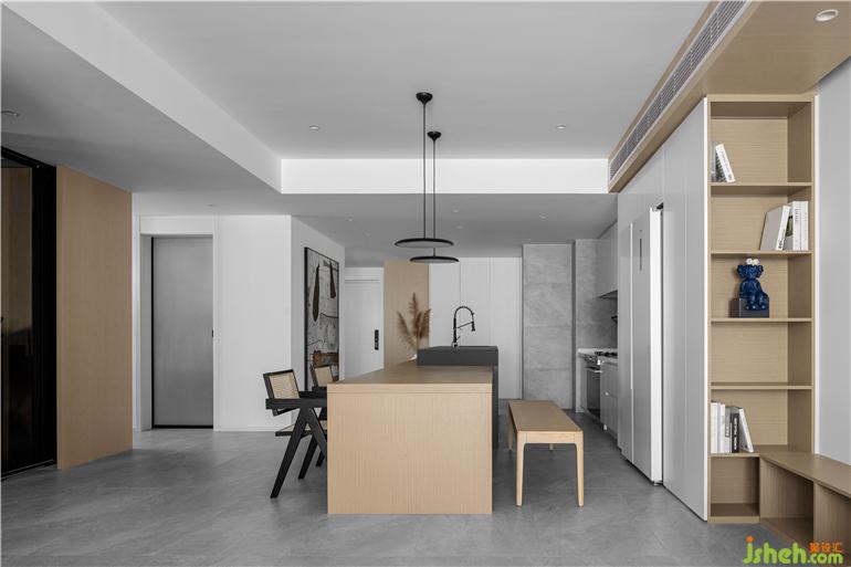 予上空間設(shè)計(jì)打掉原本狹窄的過道和廚房空間的墻體,以“空間之形,構(gòu)筑一方靜土”讓空間成為人們尋求內(nèi)心自在的載體。希望回家的人都能感受到舒適與放松,享受簡單幸福的生活,輕松愉悅家庭氛圍。