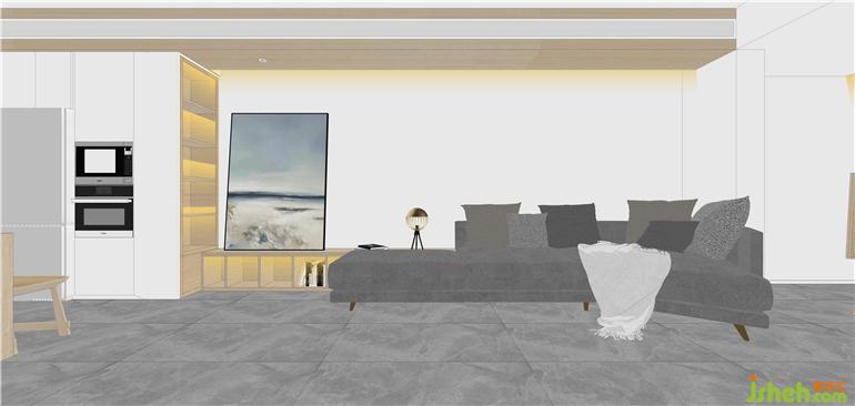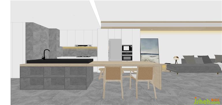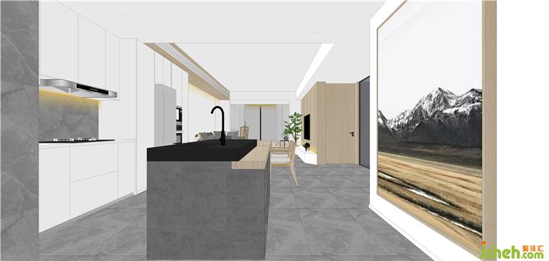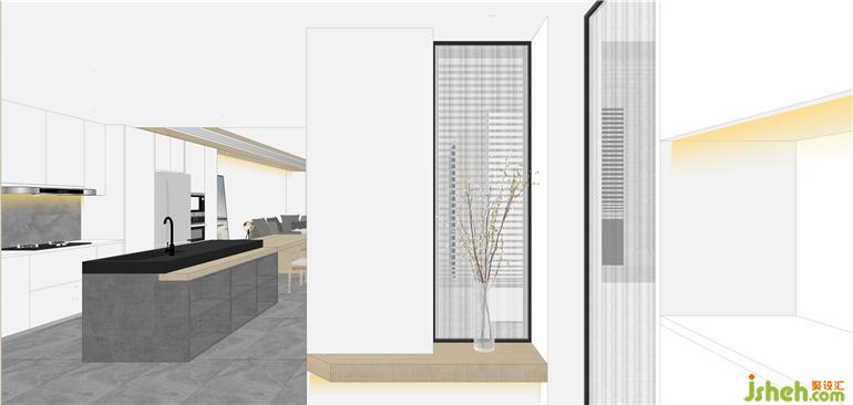 ③從廚房到客廳,整面連接在一起設(shè)計(jì),讓空間更加寬敞通透;