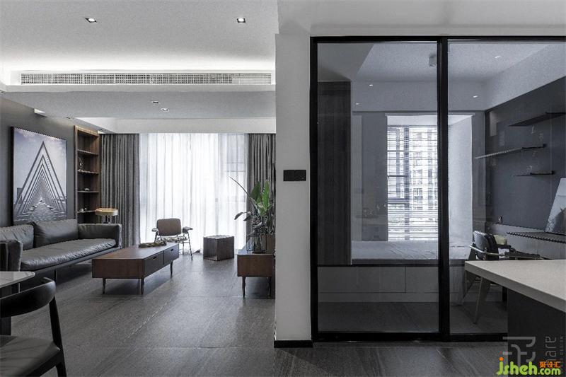 書房兼具客房功能,榻榻米的做法將儲物空間發(fā)揮到極致,玻璃隔斷式的門使餐廚空間的采光得到大大改善。