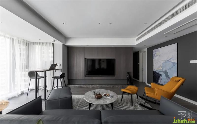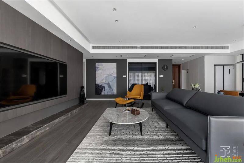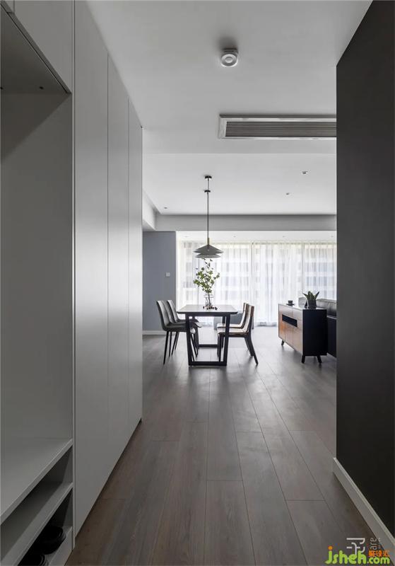 我喜歡黑,亦喜歡白,當(dāng)黑白交織在一起的時(shí)候,又融合出了另一種不僅神秘而且具有一絲純潔的顏色—灰。本案選用黑白灰為主色調(diào),搭配胡桃木色做修飾,營(yíng)造簡(jiǎn)約干凈的氛圍。