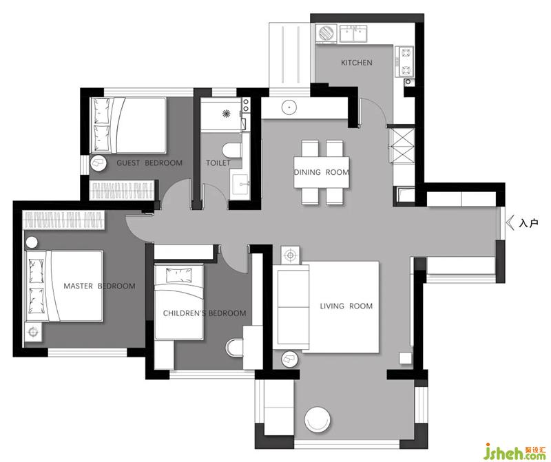 1:入戶空間較小,顯得擁擠且收納不夠。2:廚房面積過小,無法滿足業(yè)主的基本需求,很多電器無法放置。3:儲物功能不夠。4:餐廳空間不大,人多時無法使用。