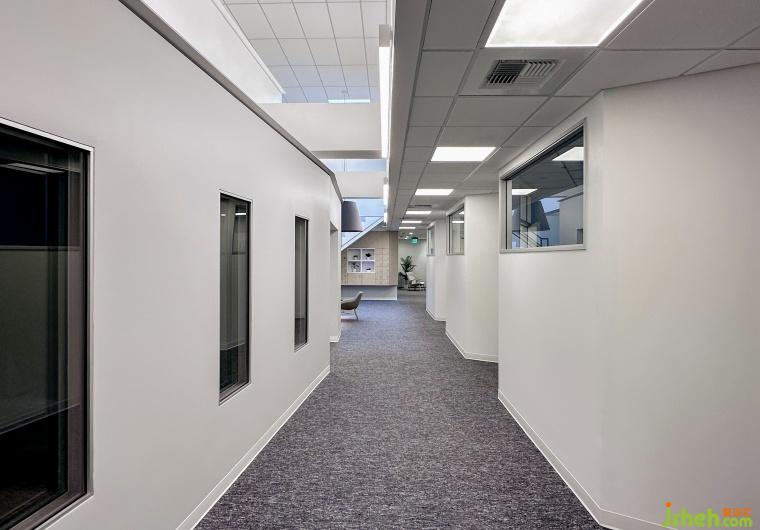 走廊的地面材料與墻壁的變化,形成了視覺上的層次分明,從而營造出一種“漸進(jìn)式”的空間節(jié)奏感。辦公空間設(shè)計地面和墻壁的銜接處選用不同質(zhì)感的材料,使得光線在其表面產(chǎn)生了柔和的反射與折射,光影隨時間流動,賦予走廊一種動態(tài)的生命力。