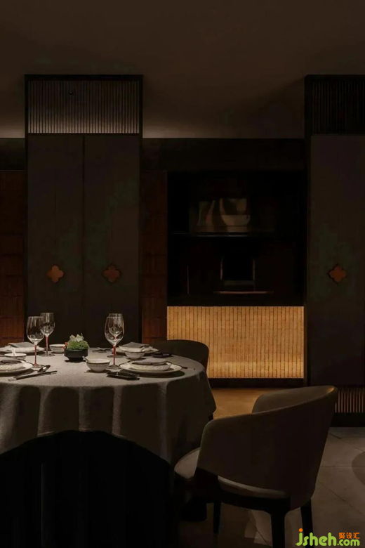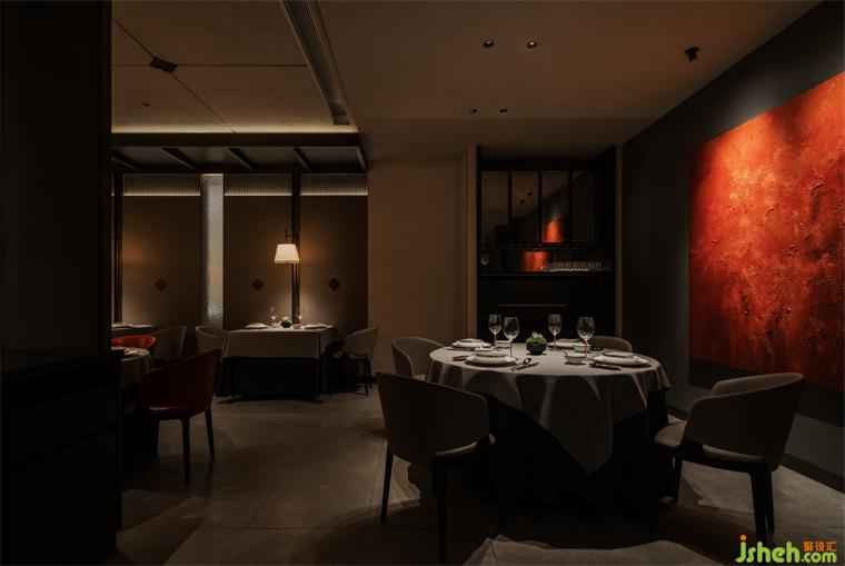 橘色燈光的玻璃磚、溫暖的紅磚、柿花與金屬板結(jié)合的皮藝屏風(fēng),設(shè)計(jì)師有序的將其置于空間之中,交相重疊。