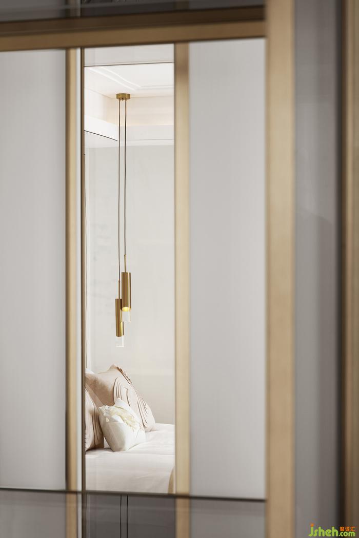 語(yǔ)堂空間設(shè)計(jì)局部的金色線條勾勒出細(xì)膩的精致幾何,豐富視覺感官的層次和維度,蘊(yùn)藏著設(shè)計(jì)師對(duì)生活的態(tài)度,品味與追求,在空間中得到完美詮釋。