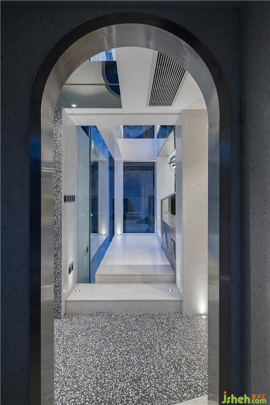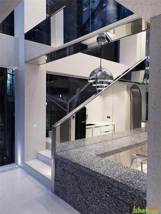 ▼ 水磨石、不銹鋼、玻璃三種現(xiàn)代材質(zhì)之間的對(duì)話