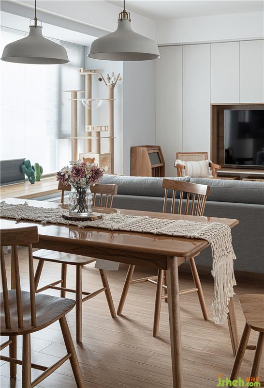情緒:整體設(shè)計(jì)采用木、白、灰色為主,以素雅、低飽和度色系營(yíng)造空間氛圍??臻g中仿佛罩了一層濾鏡,創(chuàng)造出寧?kù)o、淡雅的居家情緒。