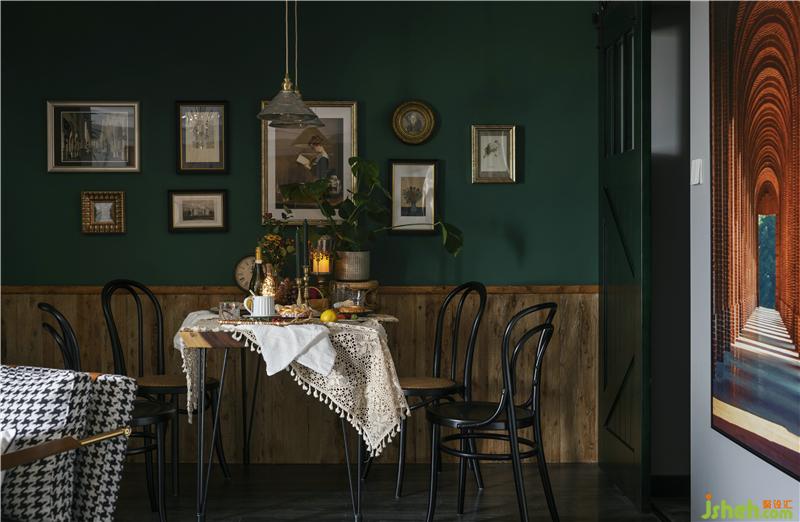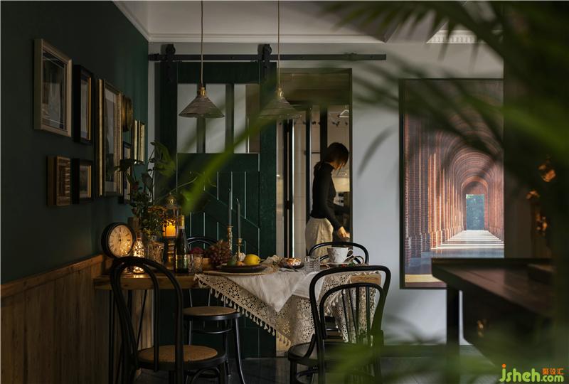 餐廳以暖色老木板與深綠色進行冷暖強烈對比,自然光影與氛圍燈光交相呼應(yīng),電影畫面感十足,餐桌上的食物在氛圍的營造下色澤感強,食物在畫面中更顯的鮮美,一副飲食浪漫畫面躍然而生。