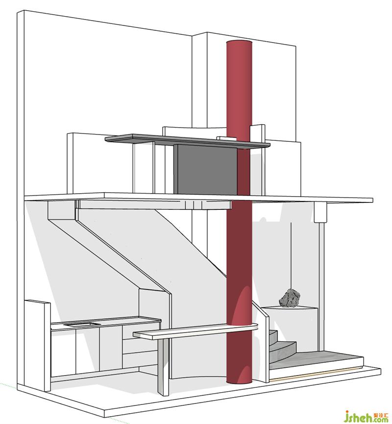 原始戶型是一個L10米*W3.8米*H5.8米的方形空間 原始樓梯和樓板鋼架已是成形狀態(tài)