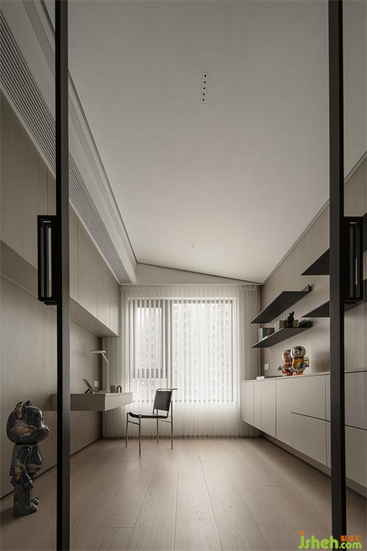 走廊內(nèi)退墻體,讓人的視覺被聚中,較長的走廊空間好像變成了藝術(shù)展館,豪宅設(shè)計(jì)將愛好填入生活的場景,融入現(xiàn)代時尚的格調(diào),展現(xiàn)居住者的生活色彩。