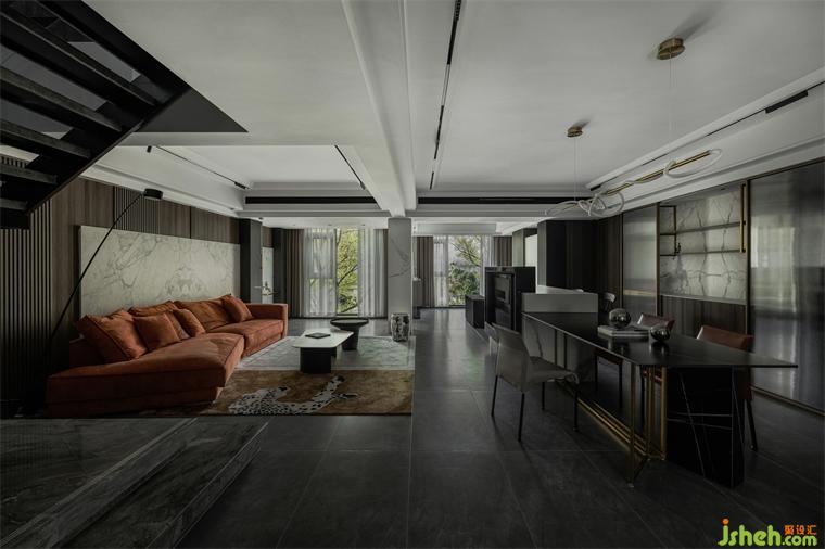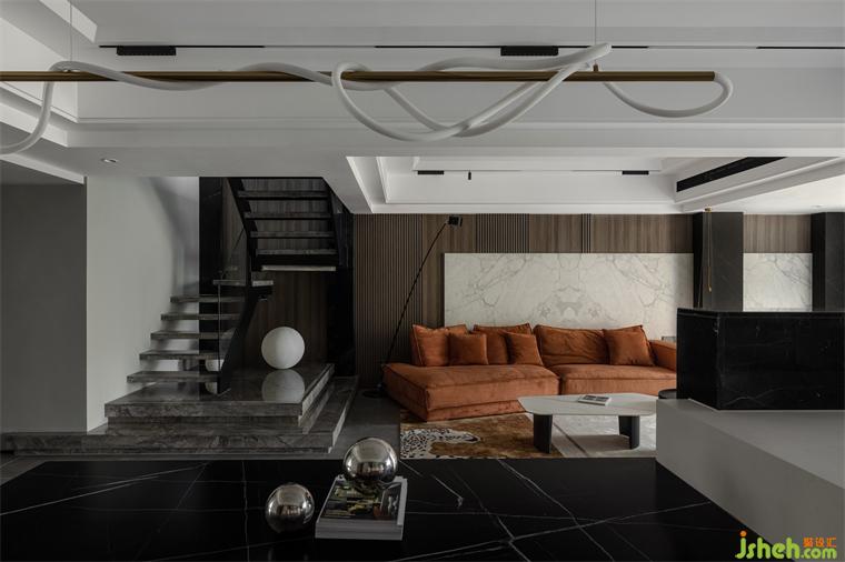 樓梯設(shè)計懸浮感,就像一件藝術(shù)品陳列于空間,增強空間張力感。