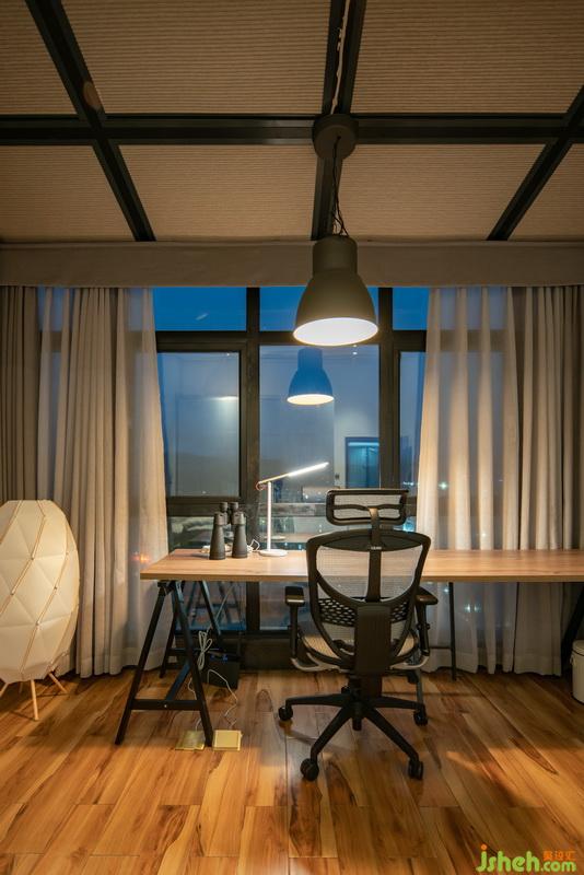 二樓小起居室與露臺的隔墻全部改成玻璃窗,室內外采用同一色調木紋地板,模糊內外的界線,提高居住體驗。室內外模糊界限,介于現實與虛無之間,室內設計師運用玻璃窗,將兩者互通有無,隨著日出日落之變化,內部空間也自成一派,生機盎然。