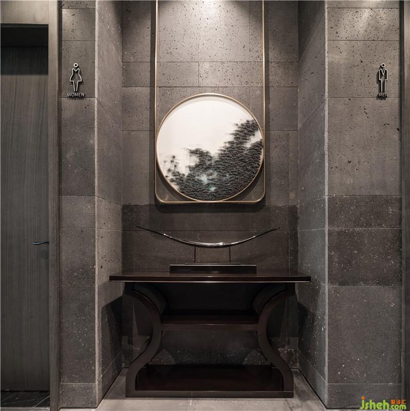 衛(wèi)生間的空間布置也是延續(xù)湖居特色的格調(diào)、引入東方特色藝術(shù)裝置畫及擺件以意境的營造為主、深遠(yuǎn)而幽靜。