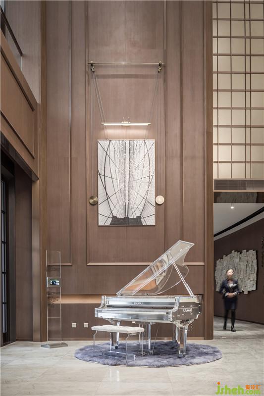 高聳有序的半透書架、通透的琉璃藝術玻璃提升了接待區(qū)的儀式感;與金屬裝置相結(jié)合的藝術掛畫、超現(xiàn)代的獨特透明設計的KAWAI鋼琴、呼應著雕塑家Lynn Chadwick 林·查德偉的《穿斗篷的步行者》一系列的雕塑作品,契合美學生活博物館的主題,漫步在書海中,傾聽著音樂,讓快節(jié)奏的城市生活,慢下來...