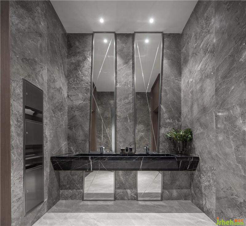 盥洗區(qū)幾何線條的鏡面和臺(tái)面呼應(yīng)著裝飾美學(xué)的主題,高級(jí)灰大理石的運(yùn)用更是將都會(huì)的品質(zhì)感體現(xiàn)得淋漓精致。