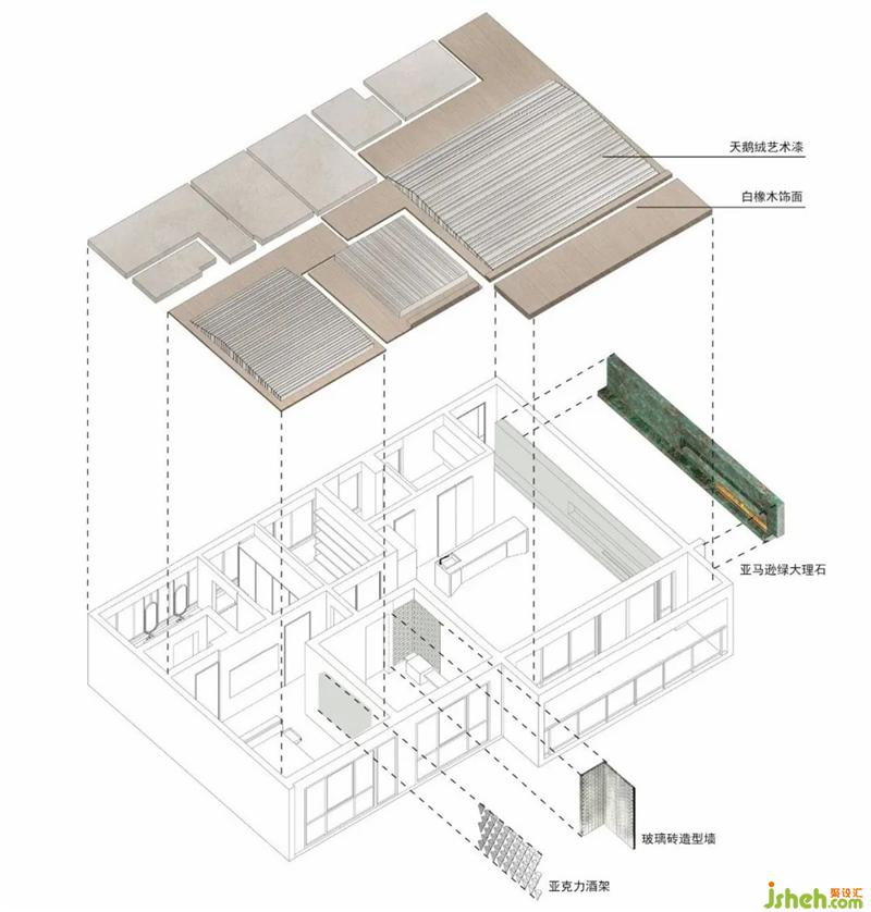 主要材料 | 垂紋不銹鋼、亞馬遜綠大理石、白橡木飾面、天鵝絨藝術(shù)漆