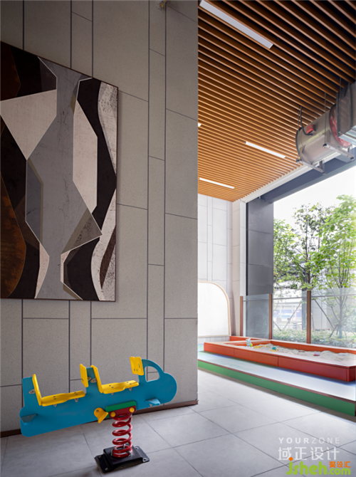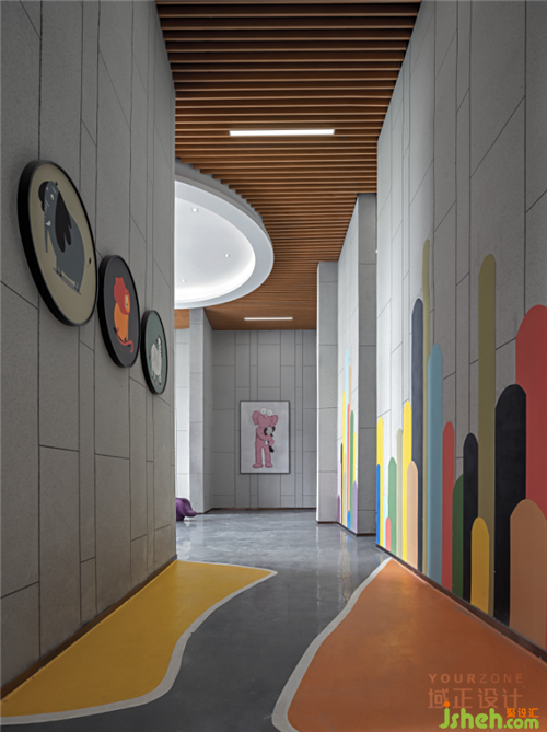 設(shè)計最大化利用兒童對色彩的敏感,為他們塑造一個繽紛絢麗的世界。長沙售樓處設(shè)計在空間中加入巧妙的互動設(shè)施會讓這個彩色奇幻世界更加有趣。各種互動設(shè)施的設(shè)計均從寓教于樂的角度布置兒童活動功能。