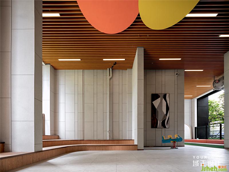 架空層一般都會受到光線的限制,這時可以通過色彩來激發(fā)視覺體驗,把一個原本糟糕的灰色角落變?yōu)槌錆M娛樂性的活動空間,提供一個有趣的游戲場所。用充滿色彩的方式為孩子們編織出一場五顏六色的夢。