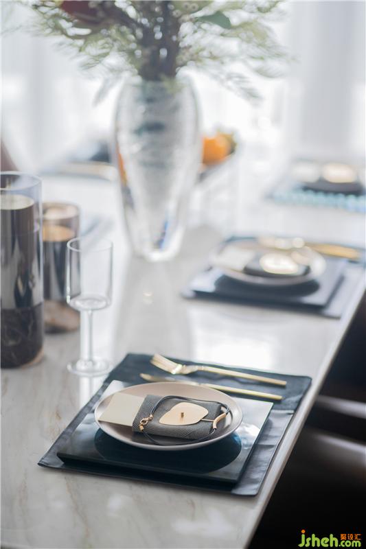 空間的層次性,往往體現(xiàn)在對過渡空間的細節(jié)處理上,那些瑣碎、低微、細小的場域線索,逐一生發(fā)、組織,而后形成統(tǒng)一的整體。在此指導之下,客廳與餐廳的開敞式連接設計,讓空間富有無限變化的可能。