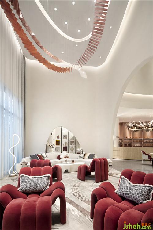 進(jìn)入前廳感受“勝日尋芳”之意境,一層層迭代的花瓣以盛開的姿態(tài)映射項目所在區(qū)域的發(fā)展前景,蜿蜒優(yōu)雅延續(xù)無盡的“春意”,開展武漢美好生活新希望。